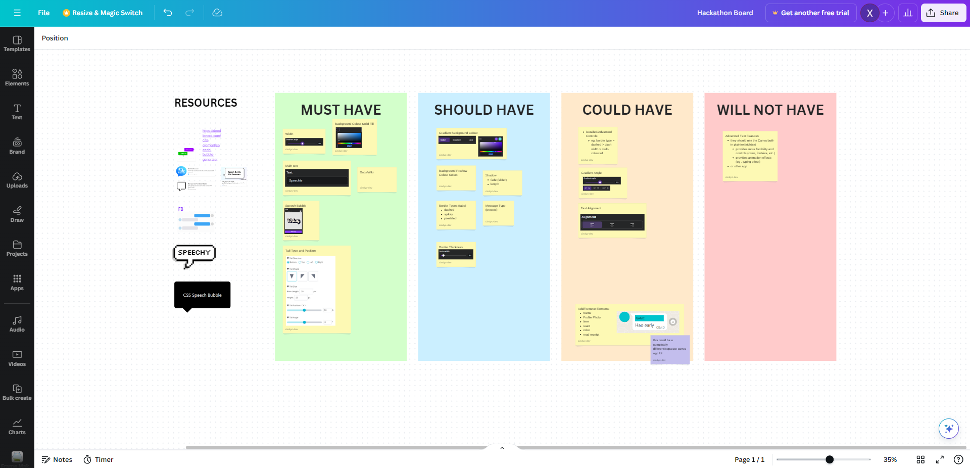 - I'd usually do a little brainstorm and planning in Miro but since it's a Canva hackathon, I'm using Canva's Whiteboard feature π