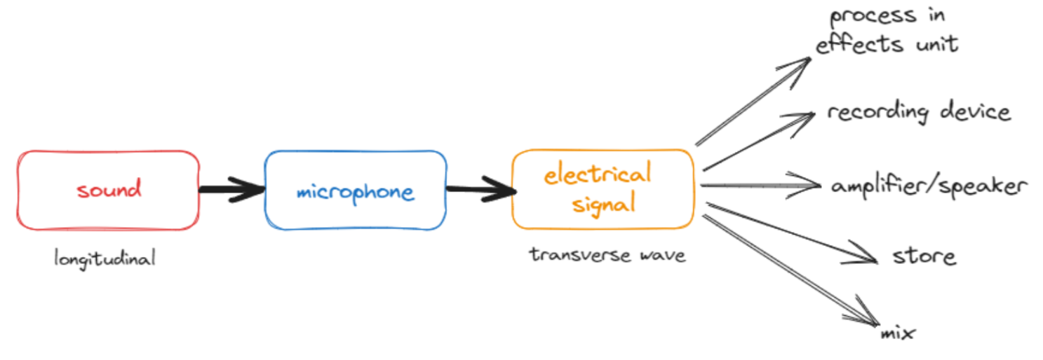 - How sound is converted from longitudinal to transverse waves in a microphone.