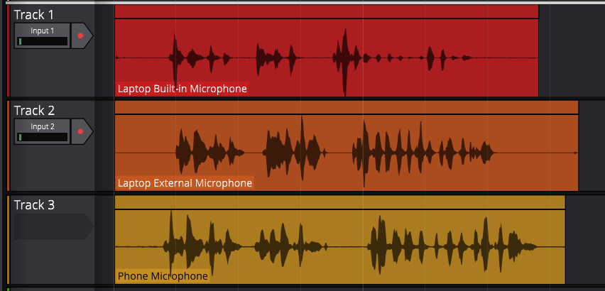 - There is a clear distinction that teh laptop with an external microphone had little to no ambient noise, especially when compared to the other two recordings. There were also no distinct distortions to the sound.